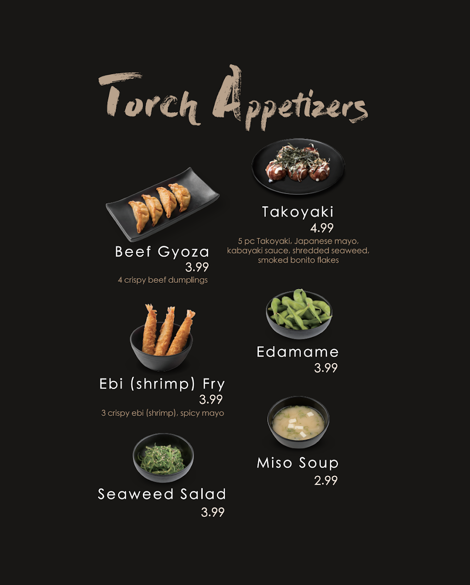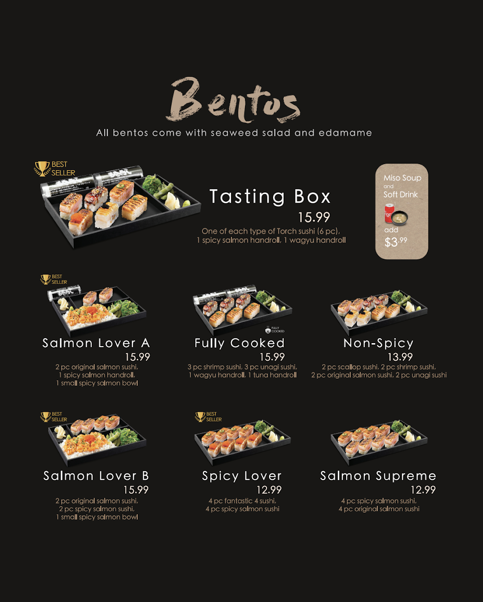 Torch Bentos (all bentos include seaweed salad and edamame)